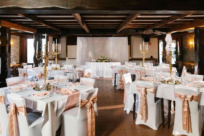 Poutres en chêne massif, murs en briques apparentes et lumière naturelle créent une atmosphère romantique et chaleureuse, idéale pour célébrer vos plus beaux instants.